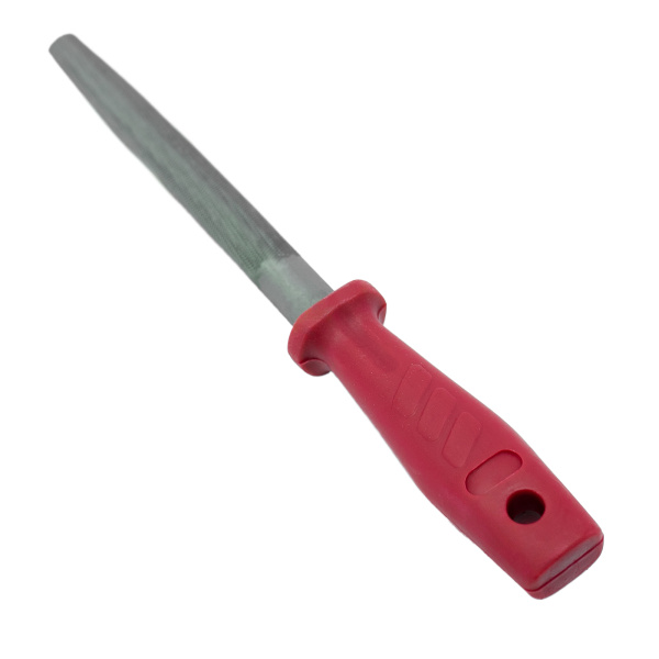 Изготовлен из инструментальной стали твёрдостью 60 HRc. Применяется для чистки контактов, снятия заусенцев, обработки различных поверхностей. Эргономичная пластиковая рукоятка.