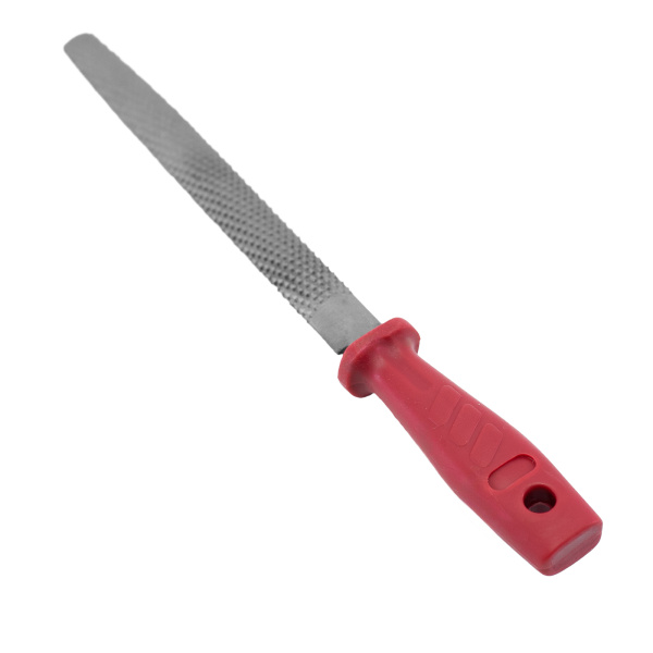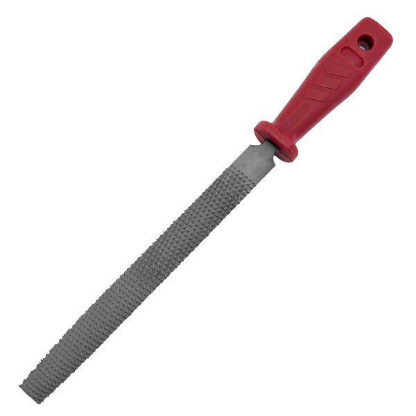 Изготовлен из высококачественной инструментальной стали 60 HRc. Полотно рашпиля имеет особые насечки, эргономичная рукоятка.
