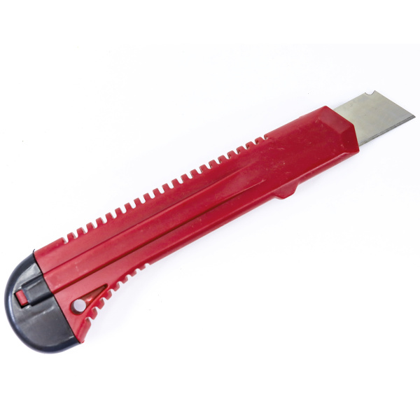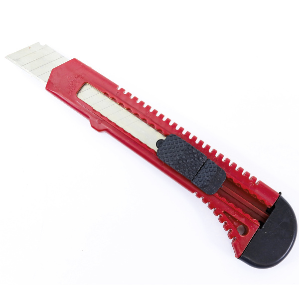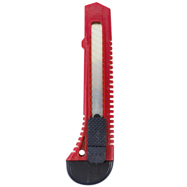 Пластиковый корпус, кнопка выдвижения и фиксации лезвия. Лезвие на 14 сегментов.