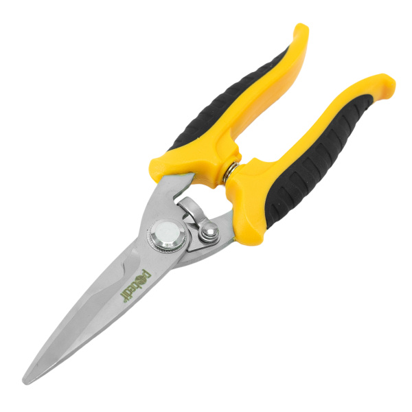 Высококачественная сталь. Эргономичные двухкомпонентные рукоятки. ножницы оснащены замком-фиксатором.