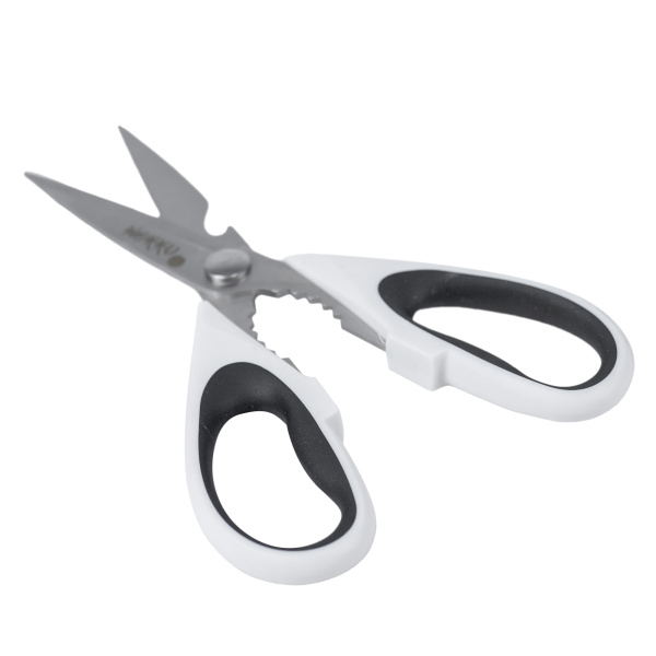 Многофункциональные ножницы для кухни. Нержавеющая сталь, термопластичный эластомер, полипропилен.. На лезвии предусмотрена открывашка для бутылок. Эргономичные ручки из двухкомпонентного пластика с орехоколом.
