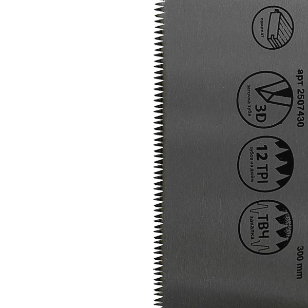Закаленный зуб, 12 зубцов на дюйм, 3D заточка, эргономичная двухкомпонентная рукоятка.
