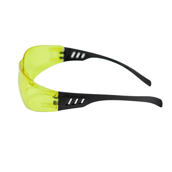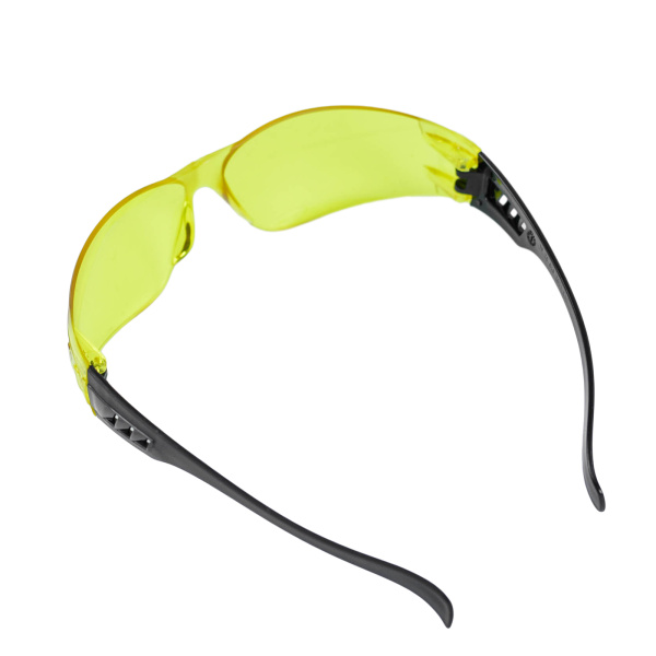 Желтые поликарбонатные линзы для работ при недостаточном освещении, спортивный дизайн для удобства носки, не работать с распылителями.