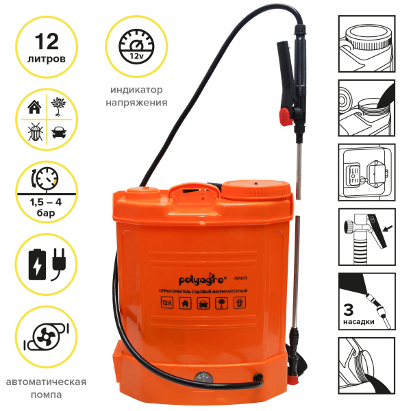 Опрыскиватель аккумуляторный садовый. 12,0л Polyagro