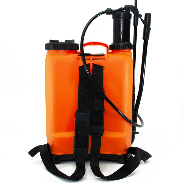 Оснащен наплечными ремнями и телескопическим брандспойтом. Предназначен для обработки растений средствами защиты, гербицидами и жидкими удобрениями.