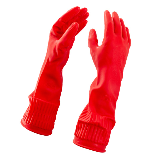 Перчатки хозяйственные латексные красные удлин манжета, разм.L