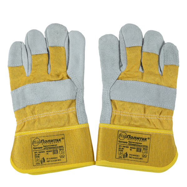 Изготовлены из высококачественного спилка КРС и хлопка.Цельная ладонь. Х/б ткань на тыльной стороне. Подкладка из флиса.