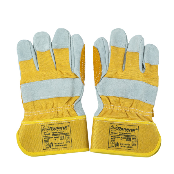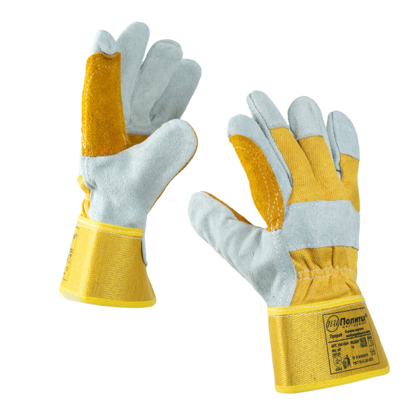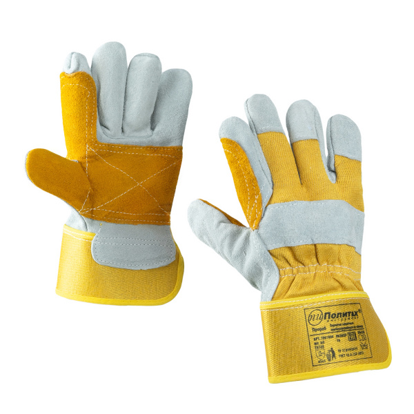 Изготовлены из высококачественного спилка КРС и хлопка.Усиленная ладонь, большой и указательный пальцы. Х/б ткань на тыльной стороне. Подкладка из флиса.