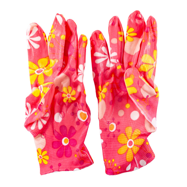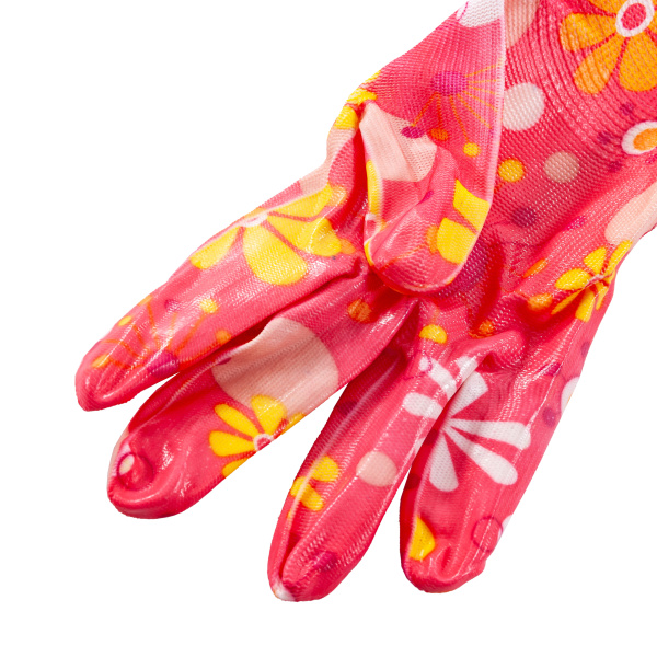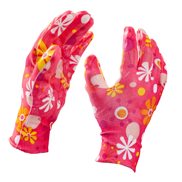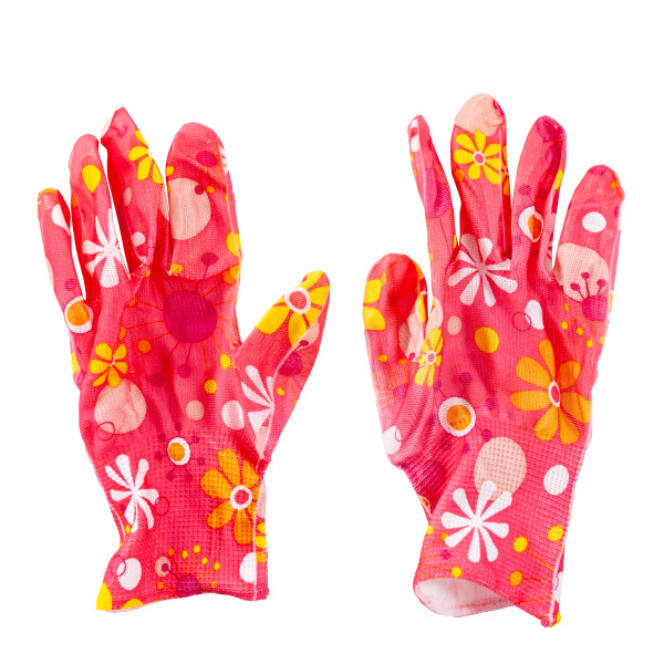 Красивые и удобные садовые нейлоновые перчатки с покрытием из прозрачного нитрила. Вес 32 г.