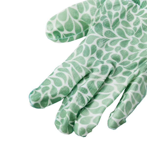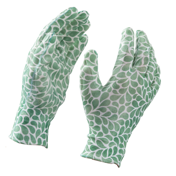 Красивые и удобные садовые нейлоновые перчатки с покрытием из прозрачного нитрила. Вес 32 г.