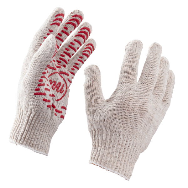 Изготовлены из (70% х/б, 30% п/э), с нанесением ПВХ. Применяется для защиты рук от механических повреждений. Вес 42-45г. 4-х нитка. Размер 9 (L).