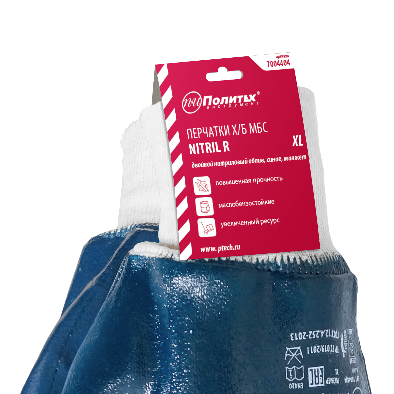 Перчатки X/Б МБС, двойной нитриловый облив, синие, манжет на подвесе
