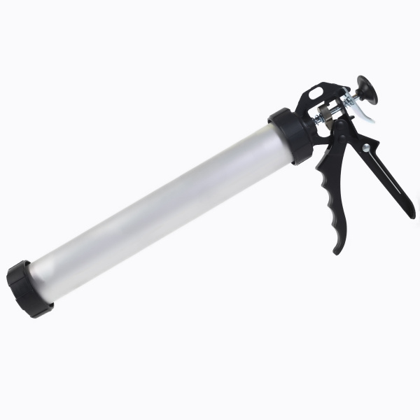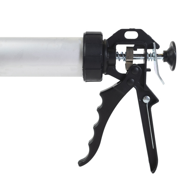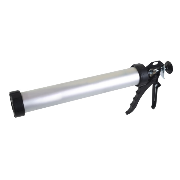 Полностью закрытый цилиндрический алюминиевый корпус, хромированный стержень круглого сечения; для герметиков, клеев.