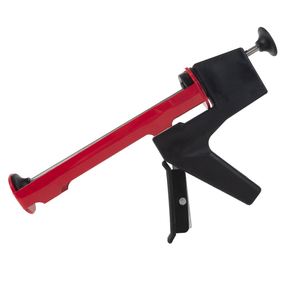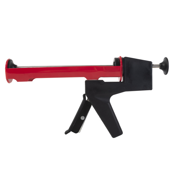 Полузакрытый металлический корпус, гладкий стержень, пластмассовая рукоятка смещена к центру; для герметиков, клеев.