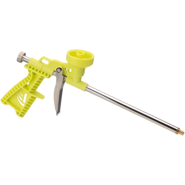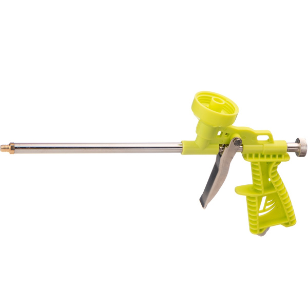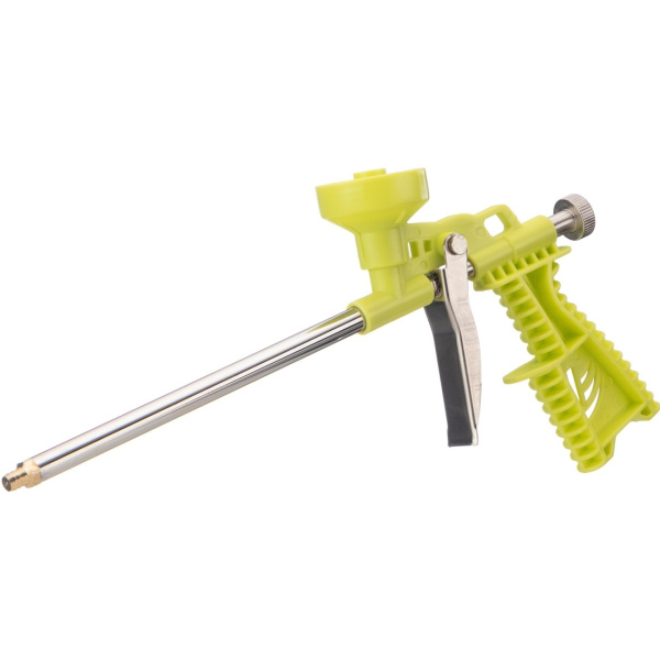 Рукоятка, корпус, адаптер из пластика; ствол, курок и винт для регулировки подачи пены из стали; клапан с металлическим шариком.