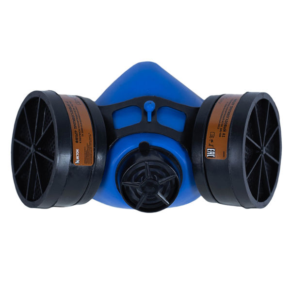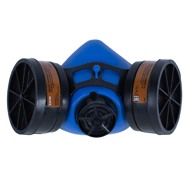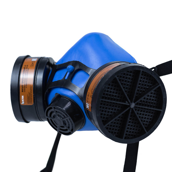 Полумаска противогазная, с возможностью смены фильтрующих патронов. Используется для покраски и работ с органическим растворителями.