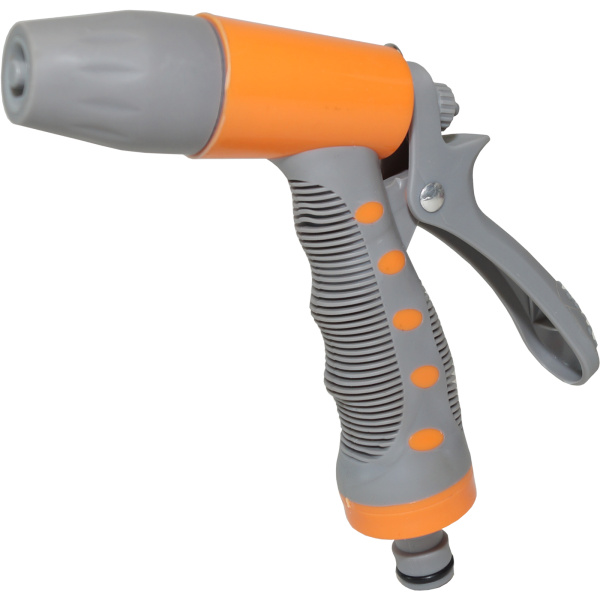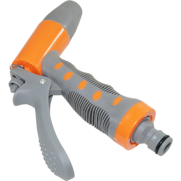 Имеет 3 режима полива, со штуцерной посадкой и фиксируемым курком. Материал АБС-пластик, обрезиненная рукоятка.