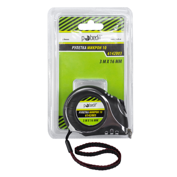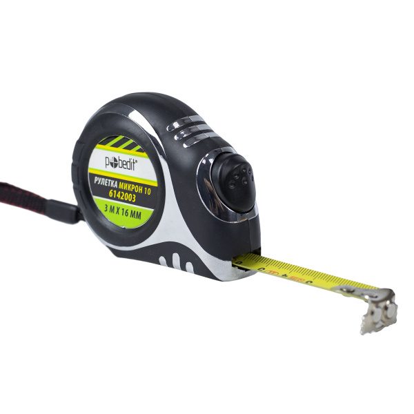 Рулетка Микрон-10, 3м*16мм, обрезин. хром. корпус
