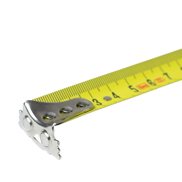 Матовая односторонняя лента с нейлоновым покрытием, магнитный зацеп, противоударный прорезиненный корпус, автостоп, возвратная усиленная пружина.