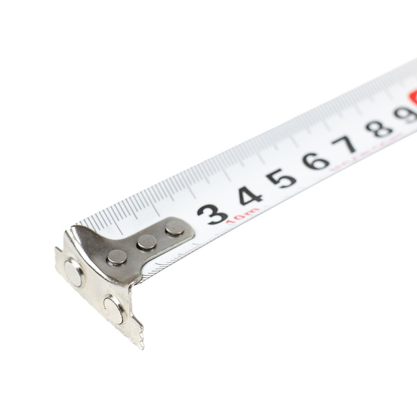 Матовая односторонняя лента (белая) с нейлоновым покрытием, магнитный зацеп, противоударный прорезиненный корпус, автостоп, возвратная пружина усиленного типа.
