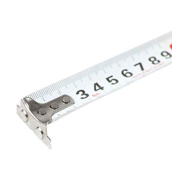 Матовая односторонняя лента (белая) с нейлоновым покрытием, магнитный зацеп, противоударный прорезиненный корпус, автостоп, возвратная пружина усиленного типа.