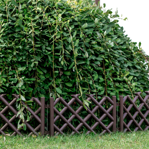 Полипропиленовый декоративный забор состоит из 4 секций, (2,78м), крепление: металлические спицы. Для использования в качестве ограждений в ландшафтном дизайне