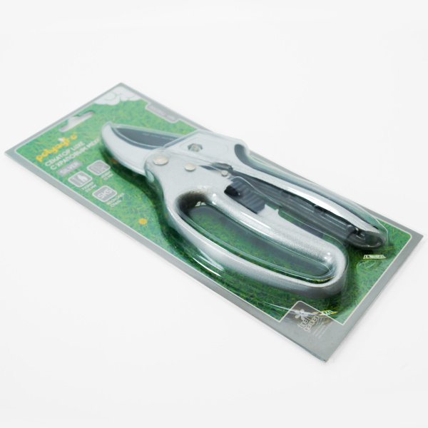 Линейка Silver. Для веток диаметром до 20 мм. Размер 210 мм. Лезвия выполнены из японской стали SK5. Длина лезвий 55 мм. Тефлоновое покрытие лезвия обеспечивает защиту от коррозии. Снабжен храповым механизмом. Защитная дуга для защиты рук. Губка, пропитанная маслом, для очистки лезвия после работы.