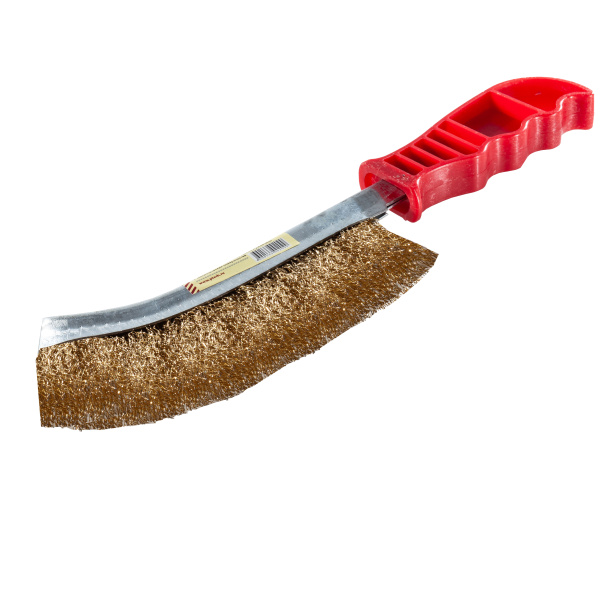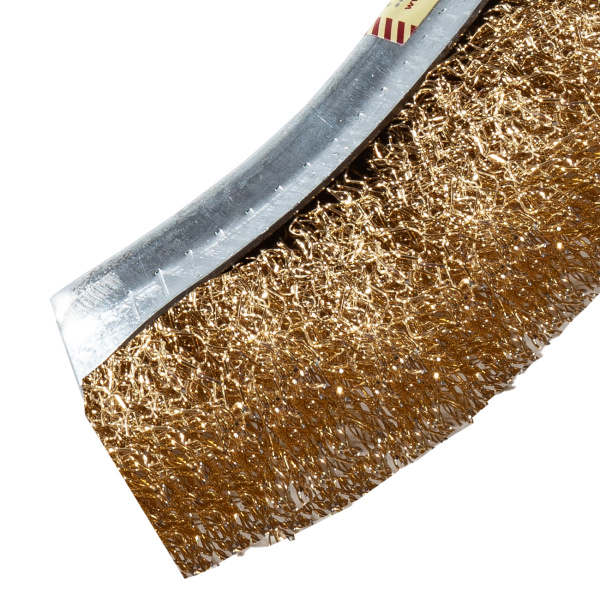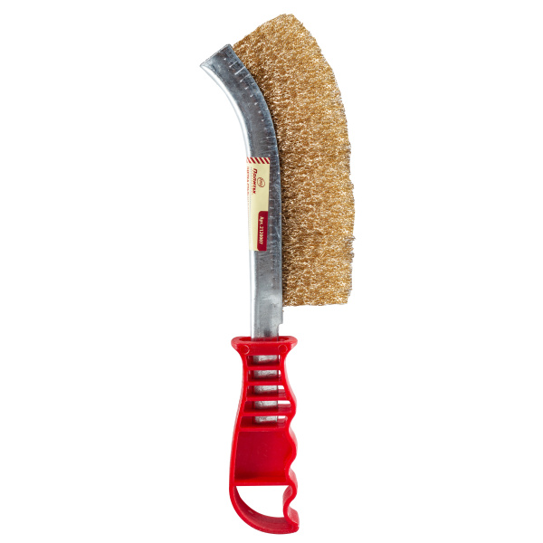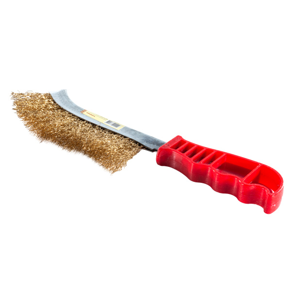 Предназначена для грубой зачистки металлических поверхностей в щадящем режиме. Имеет стальную щетину с латунированным покрытием, металлический корпус, пластмассовая рукоятка.
