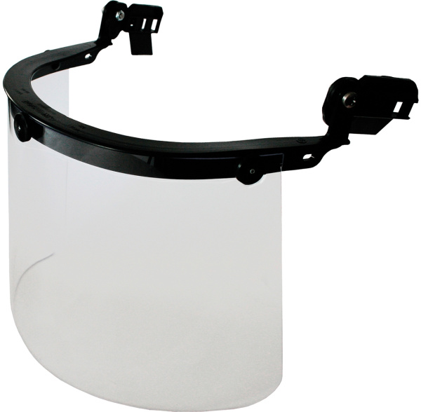 Из поликарбоната. Защищает от осколков, стружки, летящих частиц и брызг агрессивных жидкостей.