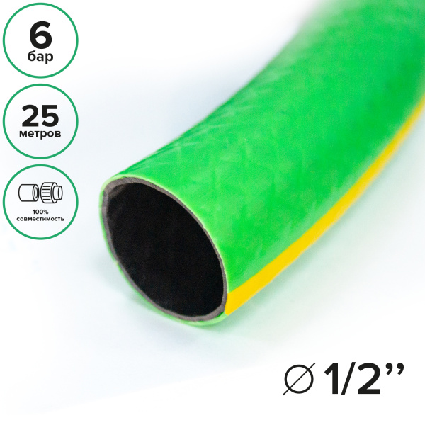 Изготовлен из высококачественного сырья с использованием прочной армированной нити. Используется для поливочных работ. Рабочее давление 5 бар.. Толщина стенки: 1,9 мм +/- 0,2. Температурный режим эксплуатации: -10°С/+65°С.