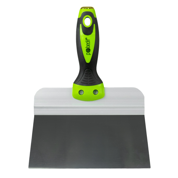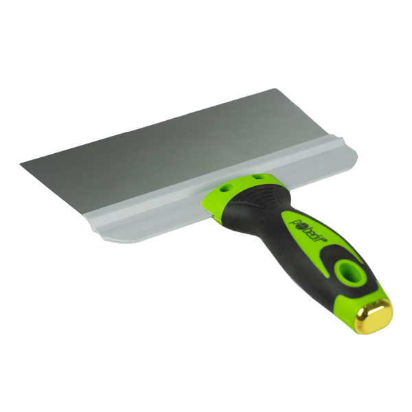 Имеет широкое профилированное полотно из нержавеющей стали с двухкомпонентной рукояткой. Предназначен для нанесения, разравнивания и сглаживания шпатлевочного слоя на поверхности.