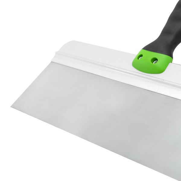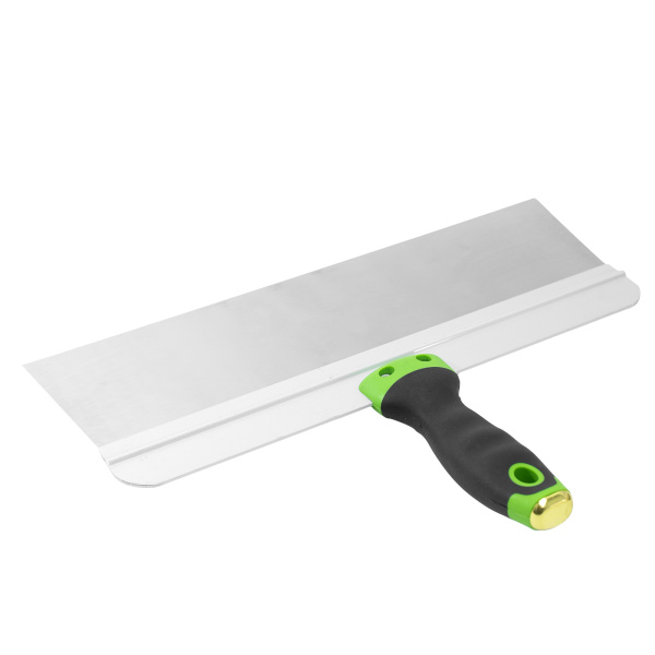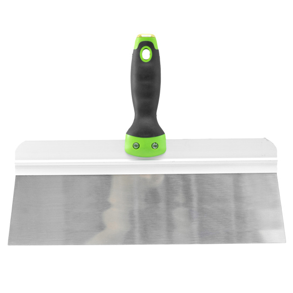 Имеет широкое профилированное полотно из нержавеющей стали с двухкомпонентной рукояткой. Предназначен для нанесения, разравнивания и сглаживания шпатлевочного слоя на поверхности.