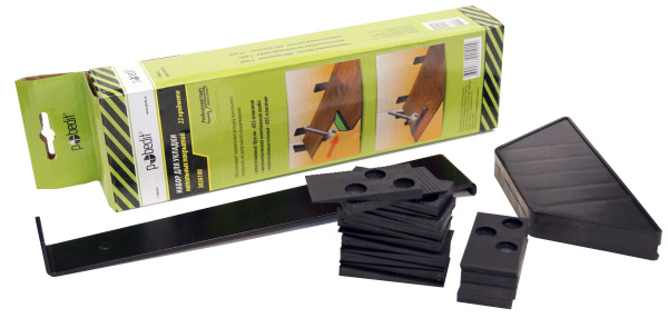 Обеспечивает плотную укладку напольного покрытия, не допуская его повреждения. В комплекте металлическая монтажная скоба, брусок и 20 распорных клиньев из ABS-пластика.