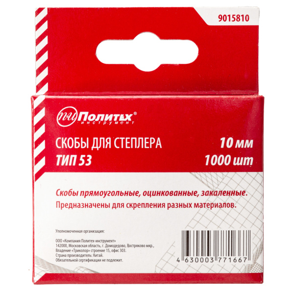 Скобы для степлера тип 53 10мм закаленные Политех