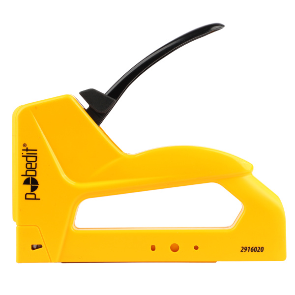 Пластиковый корпус с металлической рукояткой, фиксатор рукоятки для удобного хранения, индикатор количества скоб. Тип скоб: 53(530)