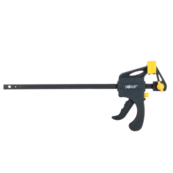 Изготовлена из прочного пластика, инструментальной стали. Снабжена быстрозажимным ручным курковым механизмом. Уменьшенный корпус.