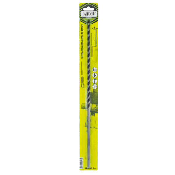 Высокоуглеродистая сталь, режущая пластина из победита.Возможно применять с ударными электродрелями.Для бетона, кирпича.