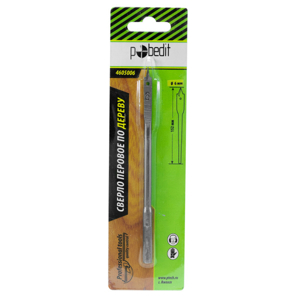 Выскоуглеродистая сталь,плечевая заточка, хвостовик шестигранной формы. Для сверления отверстий в древесине.