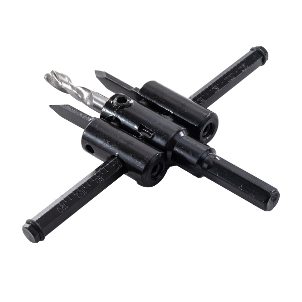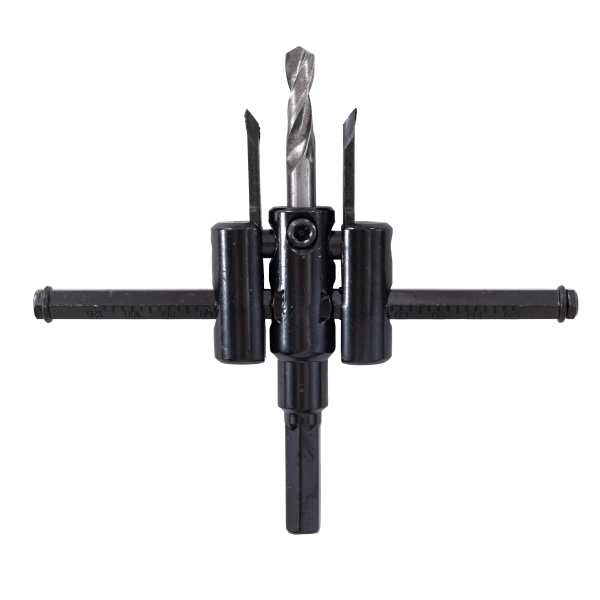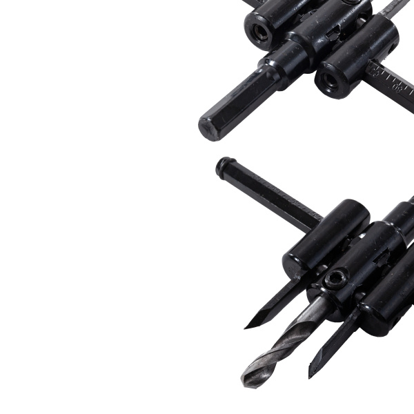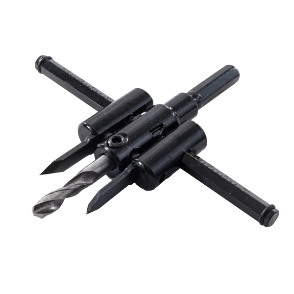 Инструментальная сталь. Используется как насадка для дрелей в режиме сверления без удара. Центрирующее сверло, резцы и шестигранный ключ в комплекте.