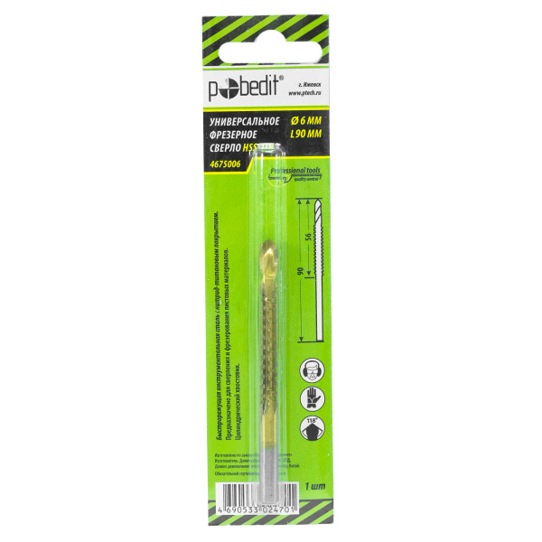 Инструментальная легированная сталь, нитрид-титановое покрытие. Для сверления с последующим фрезерованием листовых материалов