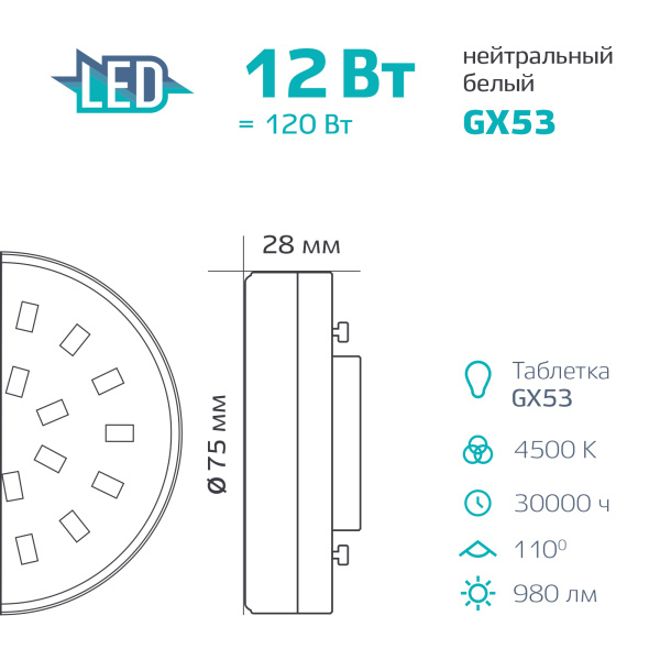 Лампа светодиодная GX53_12W_4500K GX53 12Вт GX53 4500K