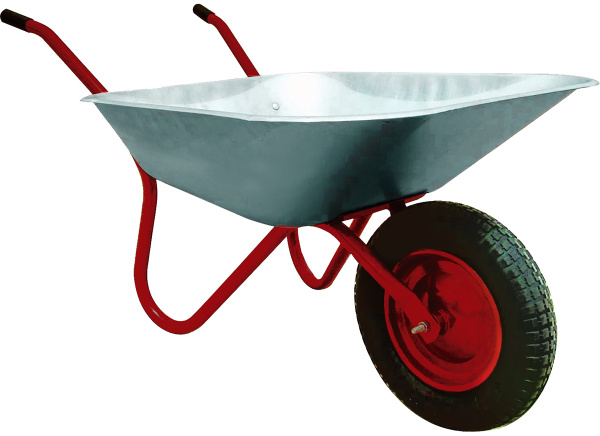 Предназначена для садовых работ. Оцинкованное корыто. Колесо на подшипниках с металлическим диском. Максимальная нагрузка 90 кг. Колесо 3.25/3.00-8, диаметр втулки 12 мм.