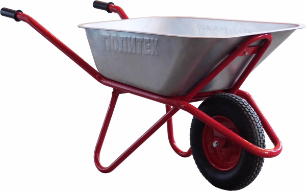 Рама стальная крашеная, обрезиненные ручки, корыто оцинкованное, камерное колесо с подшипником. Максимальная нагрузка 190 кг. Колесо 4.80/4.00-8, диаметр втулки 12 мм.
