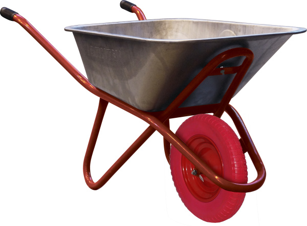 Рама стальная крашеная, обрезиненные ручки, корыто оцинкованное, бескамерное колесо с подшипником. Максимальная нагрузка 190 кг. Колесо 4.80/4.00-8, диаметр втулки 12 мм.