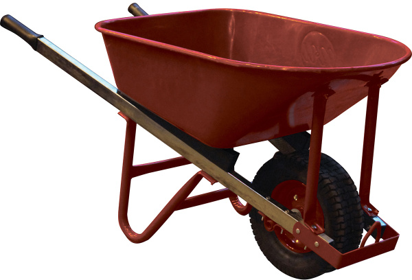 Усиленная конструкция рамы и корыта. Широкое пневматическое колесо 6.50-8 на подшипниках со стальным диском. Максимальная нагрузка 300 кг.