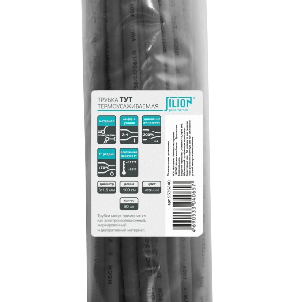 Термоусаживаемая трубка 3:1,5 черная 1м
