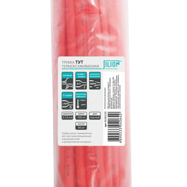 Термоусаживаемая трубка 3:1,5 красная 1м