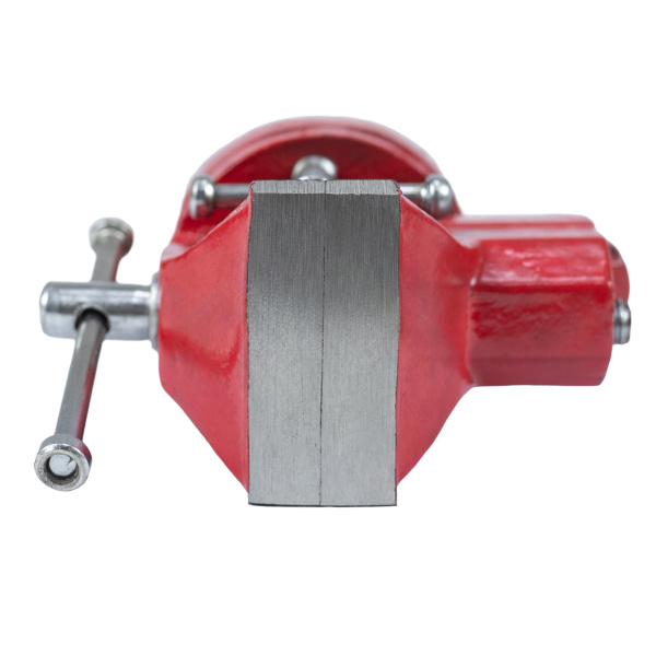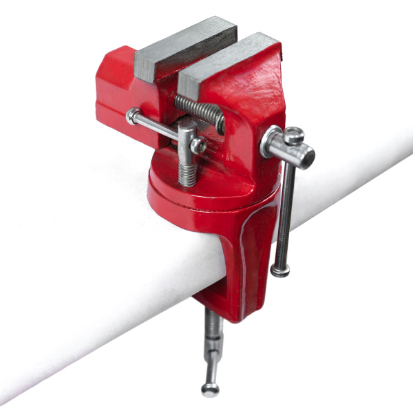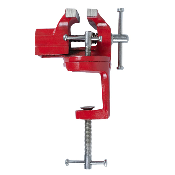 Тиски настольные, предназначены для фиксации мелких заготовок для дальнейшей слесарной обработки, изготовлены из чугуна, рабочие губки из стали твёрдость 45 HRс. Оснащены поворотным механизмом.