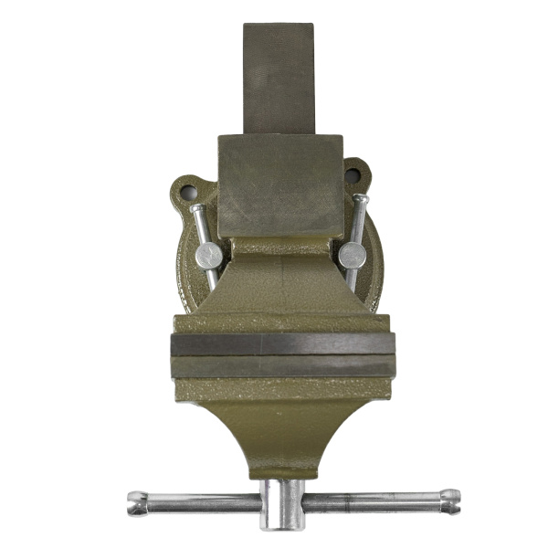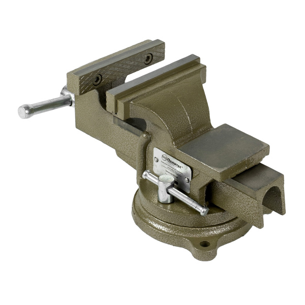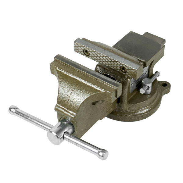 Для фиксации предметов и их дальнейшей слесарной обработки, корпус изготовлен из чугуна, рабочие губки из стали твёрдость 58 HRс. Оснащены наковальней и поворотным механизмом вращения на 360° для большей эргономичности рабочего места.