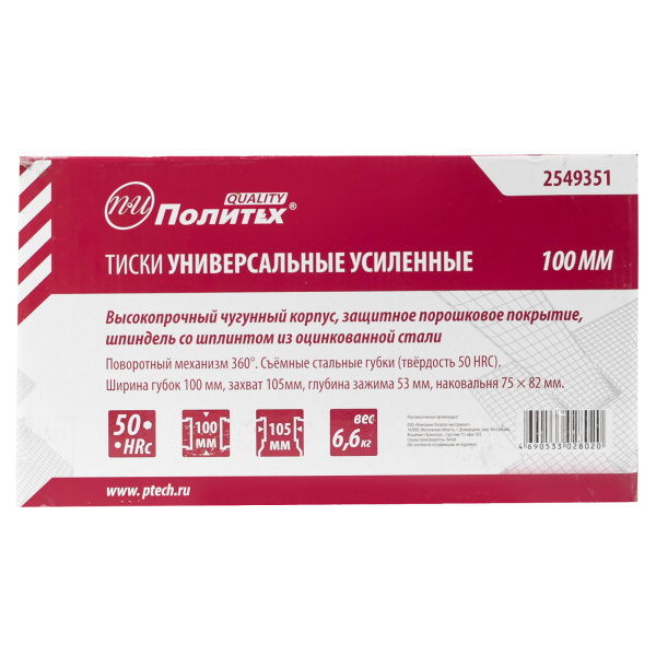 Тиски универсальные, усиленные 100 мм, Политех quality
